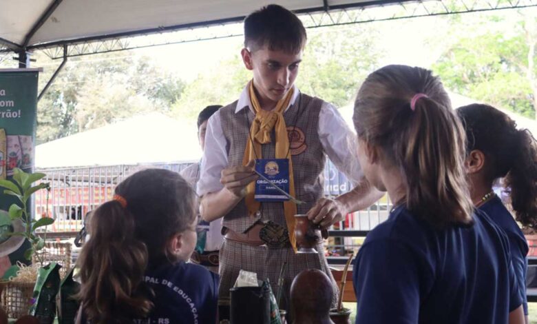 Gravataí – A 28ª edição do Rodeio Internacional do Mercosul começou nesta quarta-feira (15) com uma programação especial voltada a estudantes da rede pública de Gravataí. A iniciativa reuniu alunos e professores das escolas municipais Castro Alves e Cônego João Cordeiro em atividades de valorização da cultura gaúcha.