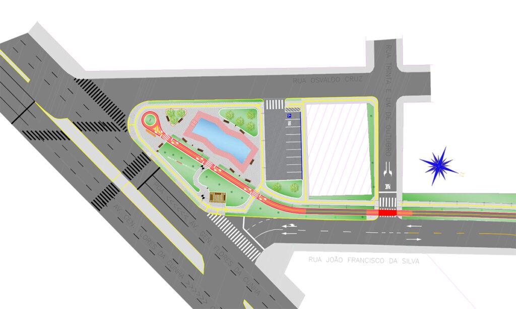 Já na Telmo Dornelas com a rua Ernesto Frield, haverá outra praça. Terá pergolado, pracinha para crianças, academia ao ar livre e uma quadra de esportes. Na outra ponta da Telmo Dorneles, esquina com a Flávio Catanhede, terá outra praça. Nela está previsto uma pracinha para crianças e área de convivência com bancos.