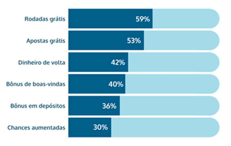 Outro ponto considerado importante para jogadores foram os bônus e promoções oferecidos pelos cassinos. Entre os bônus mais comuns, as rodadas grátis se destacam como a escolha favorita dos jogadores brasileiros, com cerca de 59% dos entrevistados afirmando que esse tipo de bônus oferece as melhores oportunidades para jogar sem custos e ainda ter a chance de ganhar prêmios. As apostas grátis e cashback também são grandes favoritos dos jogadores que buscam oportunidades de maximizar seus ganhos.