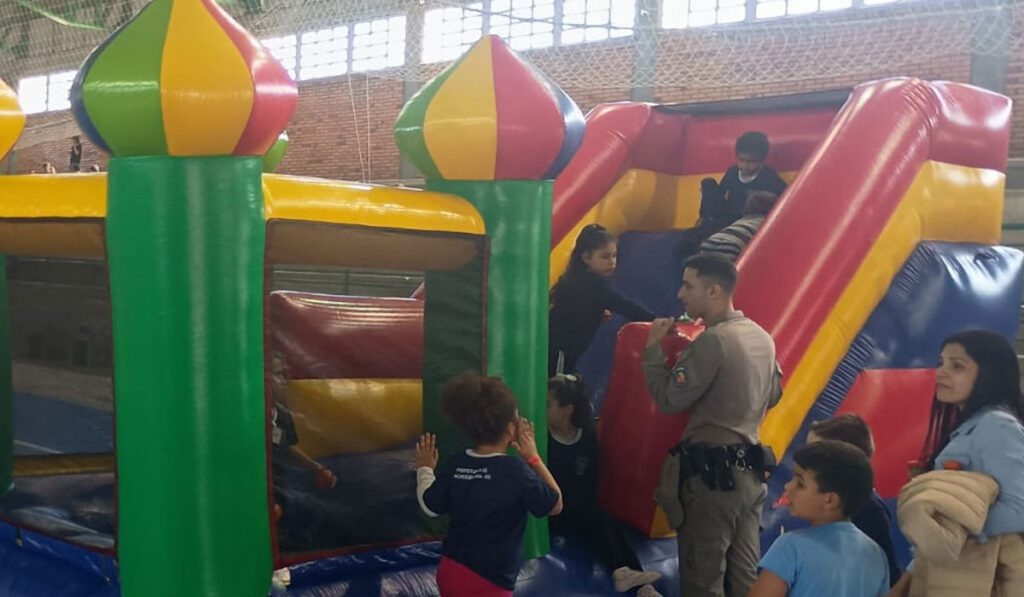 A programação incluiu apresentações da Banda Adjunta da Brigada Militar, que executou repertório voltado ao público infantil. Outra atividade desenvolvida foi uma ação educativa sobre o trânsito, conduzida pelo soldado Fogliarini, da Escolinha de Trânsito do Comando Rodoviário da Brigada Militar. No espaço montado na área externa do ginásio, as crianças puderam vivenciar a rotina de condutores e pedestres em situações simuladas.