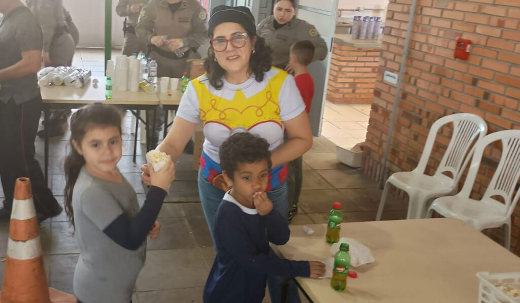 A festa também contou com a participação da funcionária pública Simone Gonçalves Mariani, que atuou como voluntária na preparação e distribuição de pipocas para as crianças. Ela destacou que, para ela, o voluntariado representou uma oportunidade de contribuir com a comunidade e participar diretamente da interação entre a Brigada Militar e as crianças. “Cada saquinho de pipoca entregue é um momento de aproximação. O sorriso das crianças e o contato com elas reforçam o valor desta ação”, afirmou Simone.