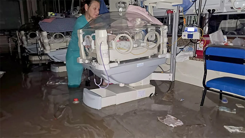 O Serviço Meteorológico Nacional, conforme a MetSul, emitiu alerta vermelho para Bahía Blanca e cidades vizinhas, incluindo Coronel Rosales, Coronel Dorrego, Monte Hermoso, Puan, Tornquist e Villarino. A orientação é para que a população evite sair de casa e busque abrigo em locais seguros. A população foi orientada a permanecer em casa e evitar transitar pelas ruas alagadas. O Hospital Interzonal Dr. José Penna foi um dos mais afetados pela tempestade. A água invadiu setores essenciais, incluindo a neonatologia, obrigando enfermeiros a evacuar bebês recém-nascidos – foto abaixo.