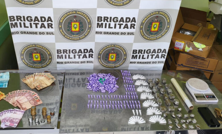 Durante a revista pessoal, nada de ilícito foi encontrado com o homem. No entanto, ao inspecionarem o conteúdo da mochila, os policiais localizaram 346 porções de cocaína, 33 porções de maconha, além de uma balança de precisão, um rolo de insulfilme, um telefone celular e uma quantia em dinheiro. Segundo a Brigada Militar, o material apreendido indica que o suspeito estaria transportando as drogas já fracionadas para a distribuição em pontos de tráfico na cidade.