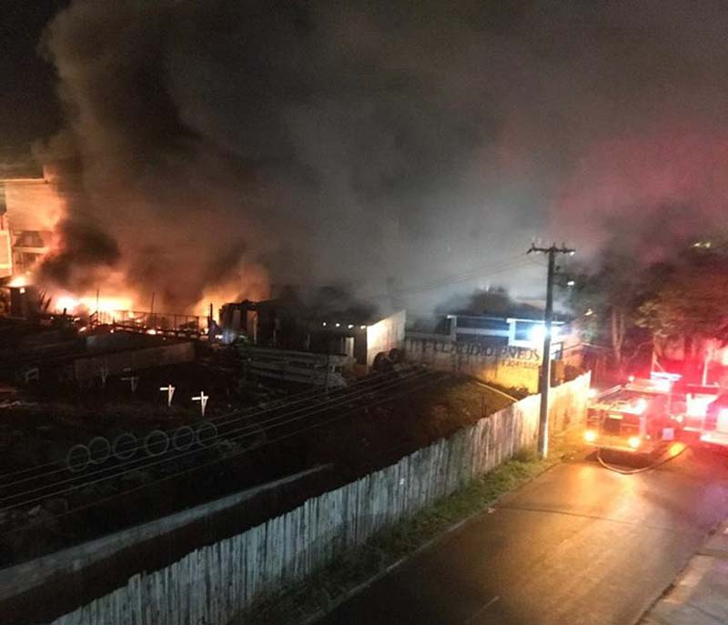 Incêndio destrói depósito de construtora na Vila Monte Carlo