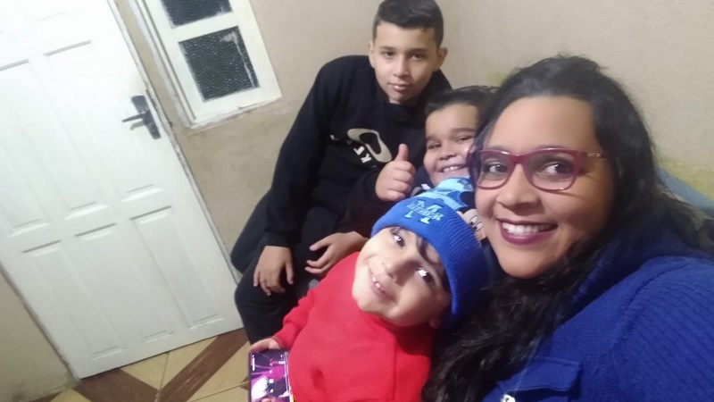“Toda segunda-feira a escola envia 10 atividades, via grupo de whatsapp. Meu filho Pedro, que está no sexto ano, é o que me toma mais tempo na ajuda com as matérias, por serem um pouco mais difíceis. Ele tem dificuldade em copiar, mas se sai super bem na escola, sempre com notas altas. O Miguel, que está no quarto ano, já se vira sozinho. E com o Enzo, que é autista, procuro sempre dar atividades pedagógicas pra ajudar no seu desenvolvimento”.