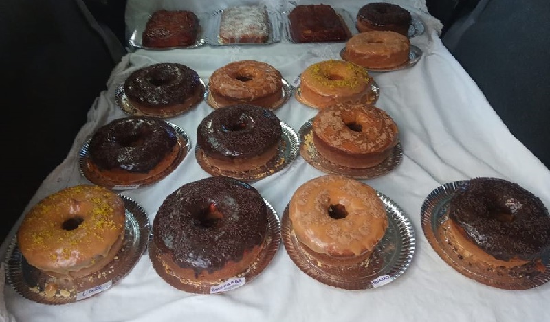 Ela conta que os bolos são tradicionais, chamados bolos da vovó. “São bolos de cenoura com cobertura de chocolate, bolo formigueiro, bolo de milho com calda, entre outros sabores. É aquele bolo que tu senta para compartilhar num café da tarde”.