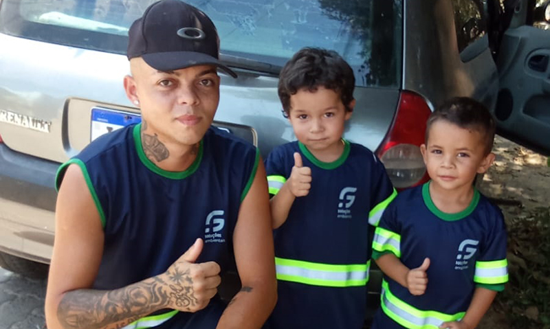 Maicon notou que muitas crianças aguardavam o caminhão para entregar o lixo e teve a ideia de fazer uniformes