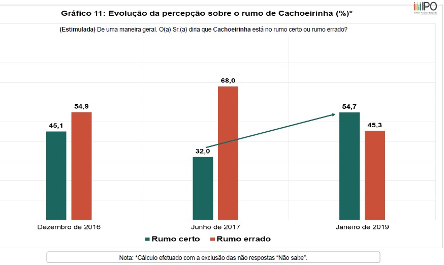Em dezembro de 2016, no apagar das luzes do governo Vicente da Cunha Pires, 41,1% dos entrevistados acreditavam que o rumo estava correto, enquanto 54,9% dizia que o rumo estava errado.