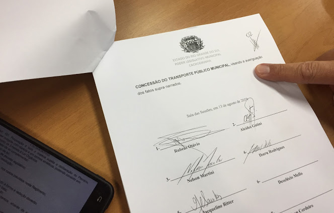 Requerimento para a abertura da CPI dos pardais faz referência ao transporte público municipal na folha das assinaturas