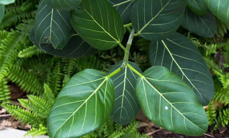 Outra planta que ganha espaço em 2026 é o Ficus umbellata, conhecido por suas folhas largas e formato escultural. Ele aparece com frequência em ambientes minimalistas e sofisticados.