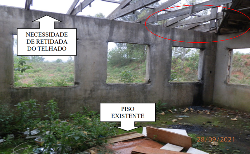 O prédio, conforme o memorial descritivo, ficou praticamente demolido em duas décadas de abandono. Será possível aproveitar apenas as paredes e o contrapiso. Uma das fotos anexadas no edital (acima) mostra a parte dos fundos completamente destruída. Além de portas e janelas, entre outros materiais, chegaram a furtar até mesmo cerâmicas aplicadas em paredes. Pelo que foi definido no edital, a empresa terá primeiro que fazer uma faxina geral usando lava jato.