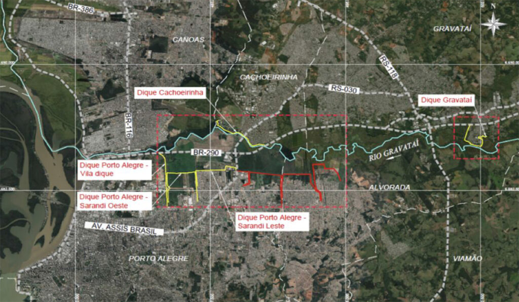 Deste total de recursos, R$ 450 milhões serão empregados na construção do dique no Caça e Pesca, em Gravataí, e prolongamento do dique em Cachoeirinha. Além disso, está prevista a construção de microbarragens no rio Gravataí. O sistema do Gravataí está em fase de análise de estudo de impacto ambiental e relatório de impacto ambiental e devem ter os termos para projeto e obras concluídos ao longo de 2025.
