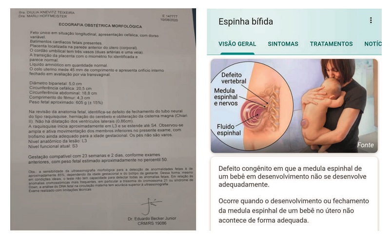 Sensibilizado com a história do casal, o especialista conseguiu que a cirurgia para corrigir a Mielomeningocele (espinha bífida) fosse realizada gratuitamente em São Paulo, único local no país que faz tal procedimento. “A cirurgia custaria entorno de 50 mil reais, mas ele conseguiu que um cirurgião fizesse. Como ela precisa acontecer até a 25ª semana de gestação, começamos a correr contra o tempo”, conta a cunhada.